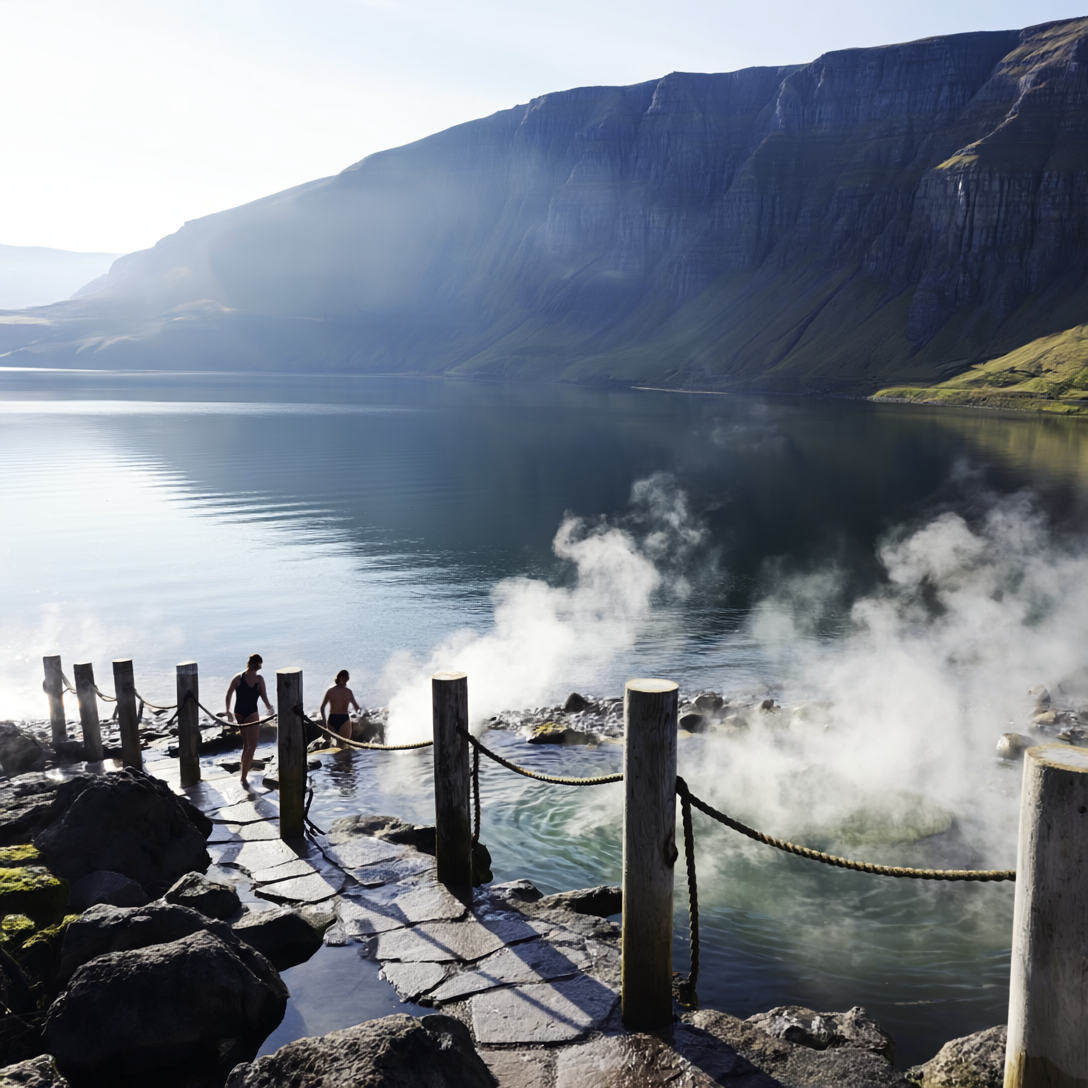 Private ride to scenic oceanside geothermal baths.